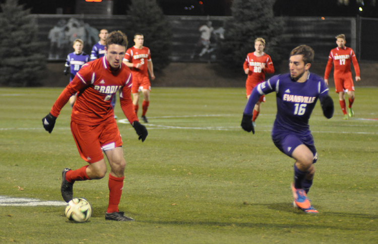 Looking to defend its conference tournament title, Bradley’s soccer team squared off against Evansville in the quarterfinals of the Missouri Valley Conference tournament Wednesday night.