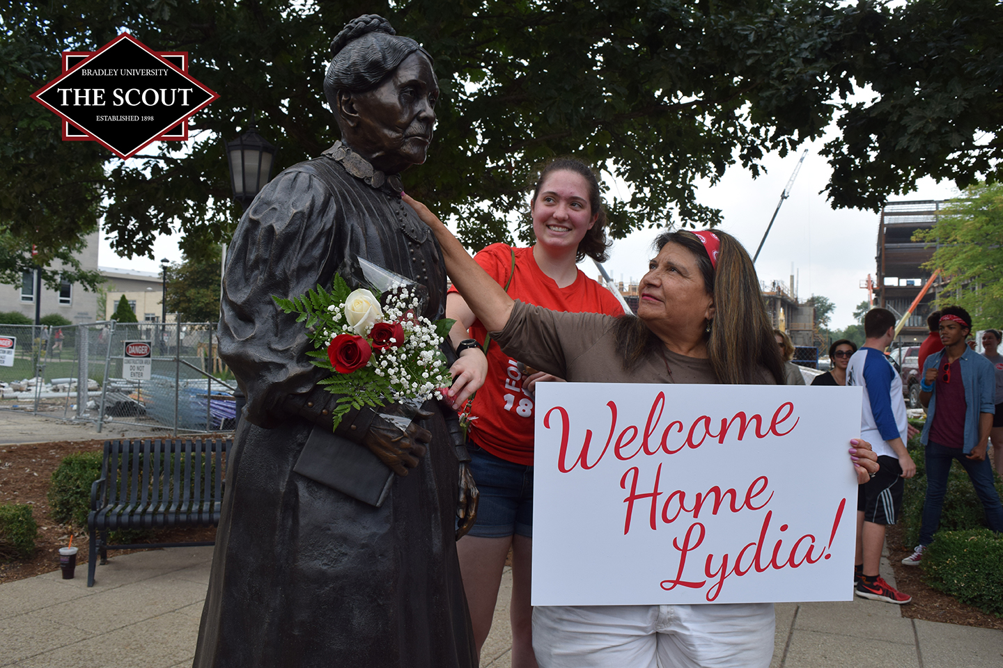 After repairing Lydia Moss Bradley’s statue for a little over two months, Bradley University revealed the statue today at the Founder’s Circle on Thursday, after