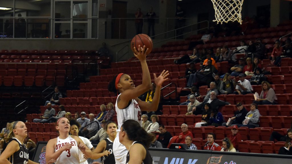 The Bradley women’s basketball team defeated Quincy University in an exhibition game last Saturday 91-62. There were many stoppages as it was a physical game with 48 fouls, but Bradley prevailed, out-rebounding the Hawks 58-30. The Braves took the lead at the 8:39 mark in…
