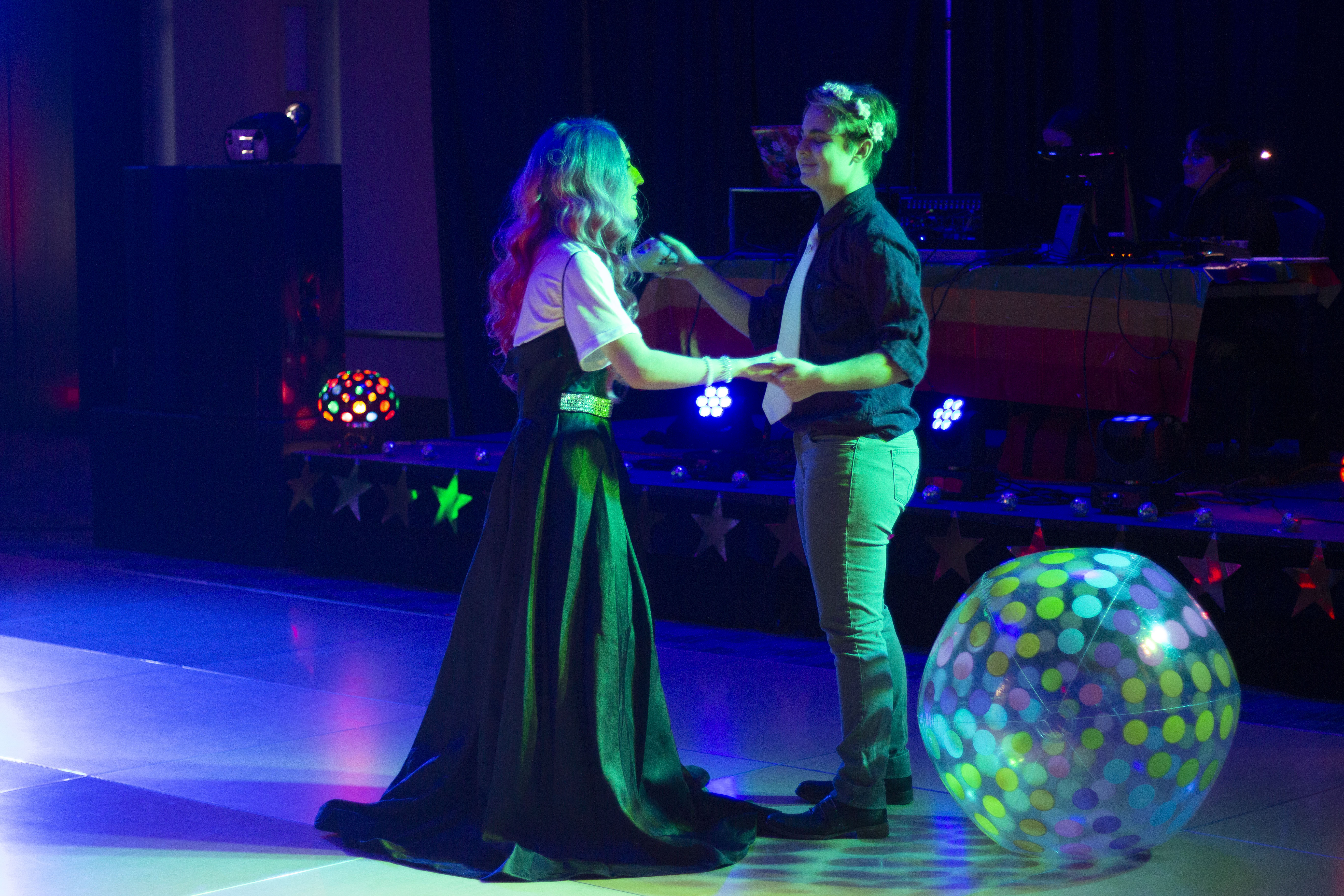 Neon lights whirled around the room. Bodies crowded onto the dance floor. Rainbows were draped over every surface: tables, walls, doorframes and quite a few