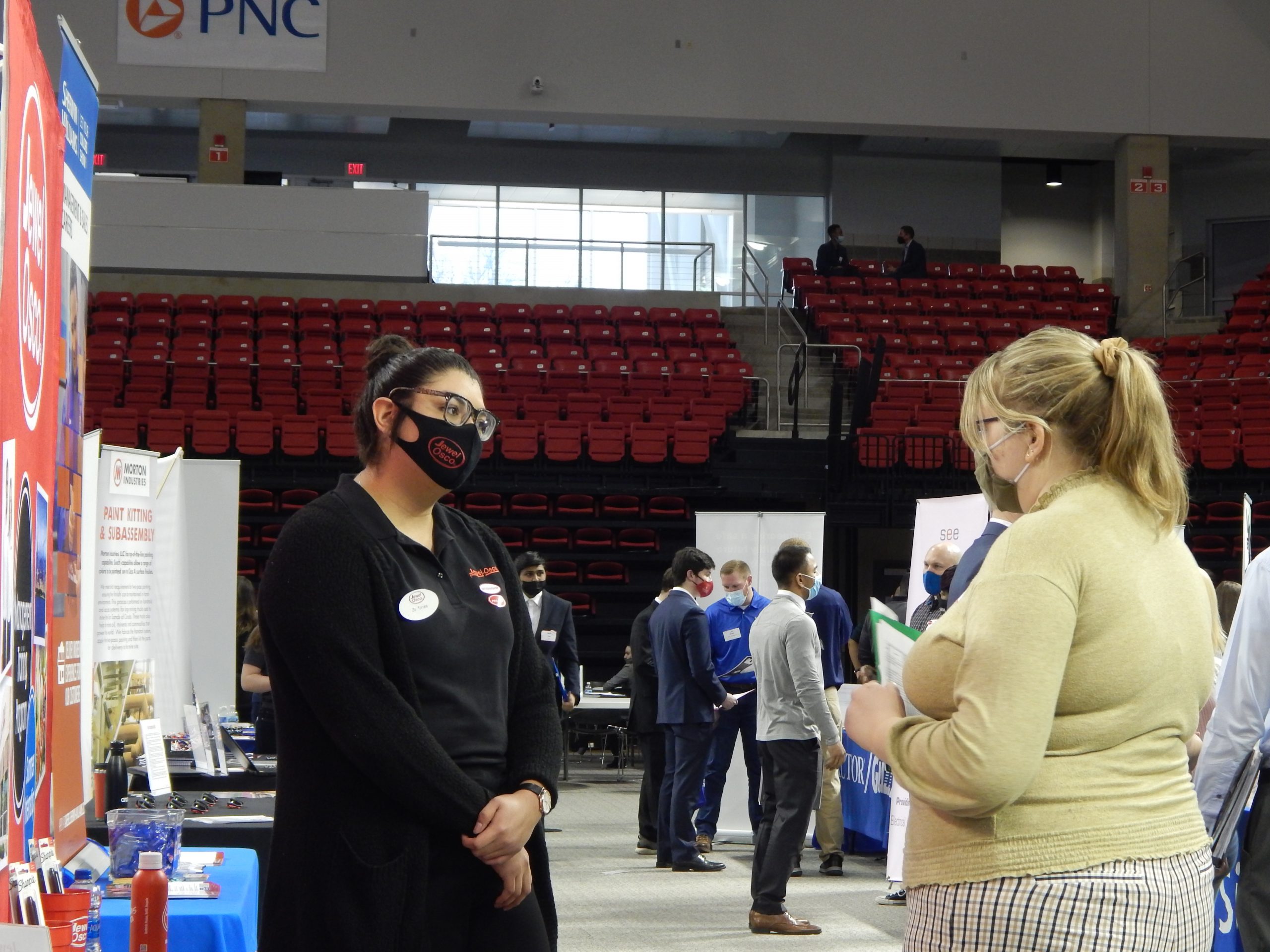 Students put on their sharpest outfits and gave their best elevator pitches this past Tuesday in hopes of landing jobs and internships. The spring in-person