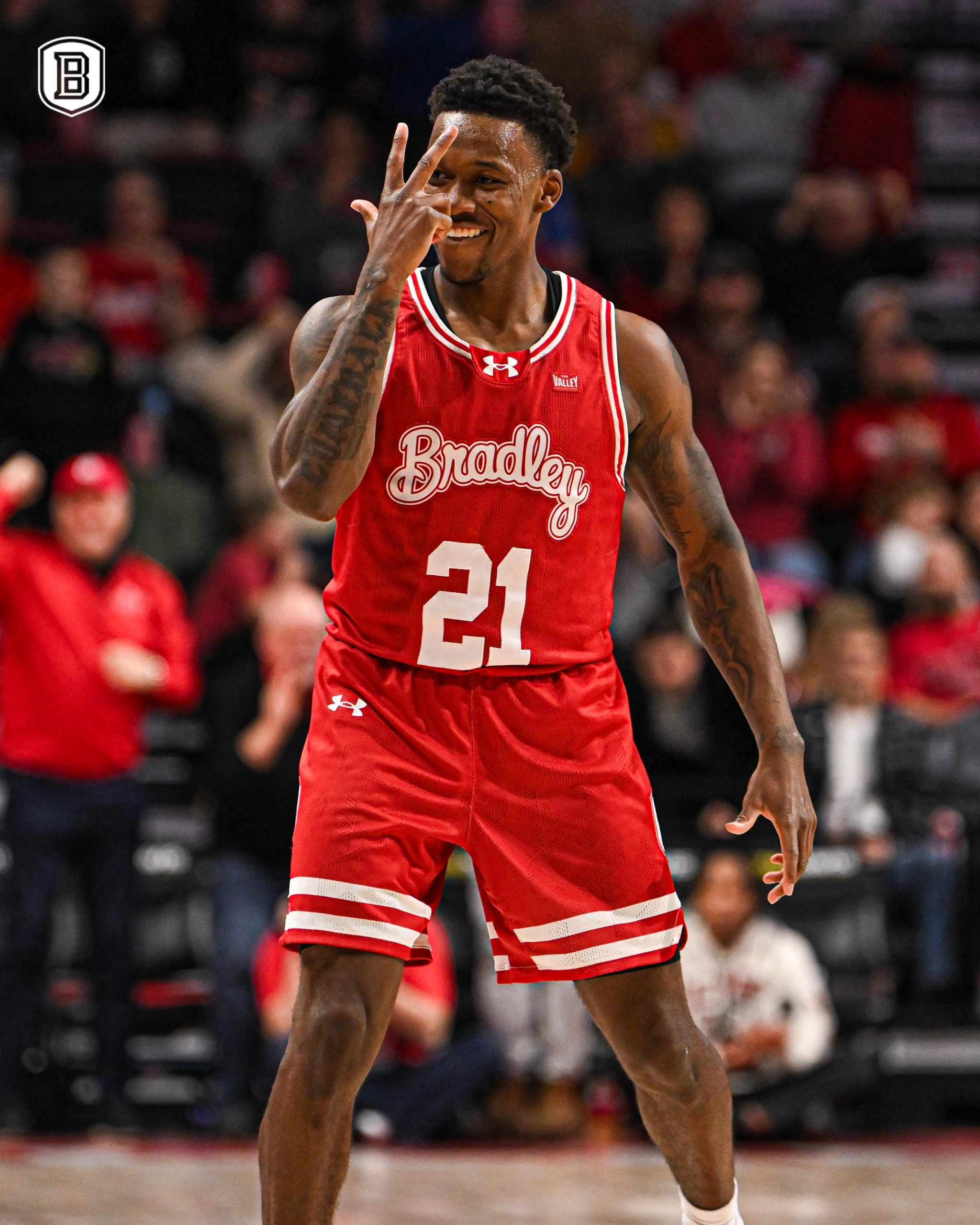 In any sport, it is hard to beat a team three times in a row, much less seven. Yet the Bradley men’s basketball team (21-7,