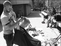 More than 100 students shaved their heads in the middle of Olin Quad Wednesday afternoon.