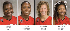 Senior Monica Rogers and sophomore Sonya Harris each had double-doubles in the game, with Rogers putting up 12 points to complement 10 rebounds, while Harris added 11 points and grabbed 16 boards, 10 of which came in the first half.