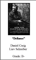 The intensity of “Defiance” is the most forward aspect of the movie. The plot entails death, gun battles, fistfights, chase scenes, and explosions. It’s just short of a James Bond movie (sorry Daniel Craig.) And although some of the emotion is replaced by action, the film still has some very powerful scenes.