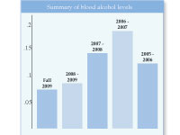 Not all the numbers in the report are up, though. The average blood alcohol levels of students who chose to be Breathalized dropped to .079 in the fall from .090, which was the average from last year.