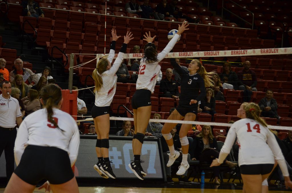 After two victories against Loyola and Valparaiso to extend their conference record to six wins, Bradley volleyball fell to Illinois State 3-1 on Monday in Bloomington. A Bradley win would have tied the team with Illinois State for second place in the conference behind Northern…