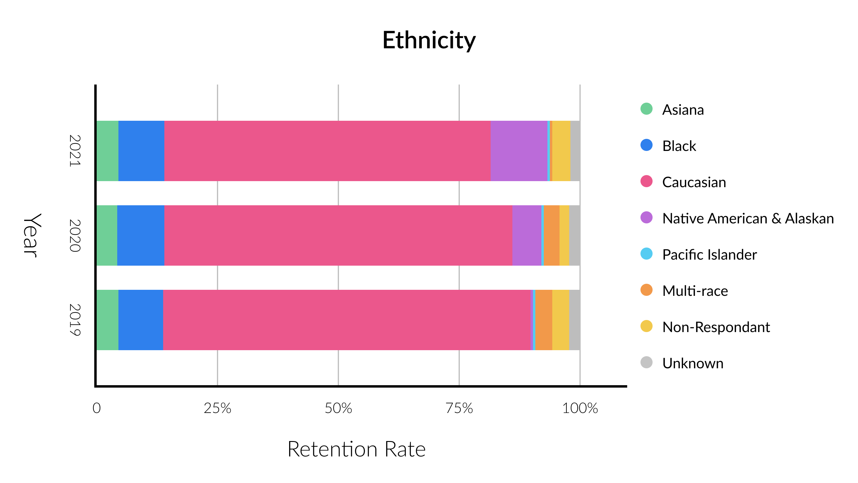 Additional data stated that less than 65% of the Bradley student body identified as Caucasian this semester compared to 2020 where almost 68% reported as Caucasian. The earliest statistical profile on the site, fall 2013, stated that over 72% of the student body was listed in the category.