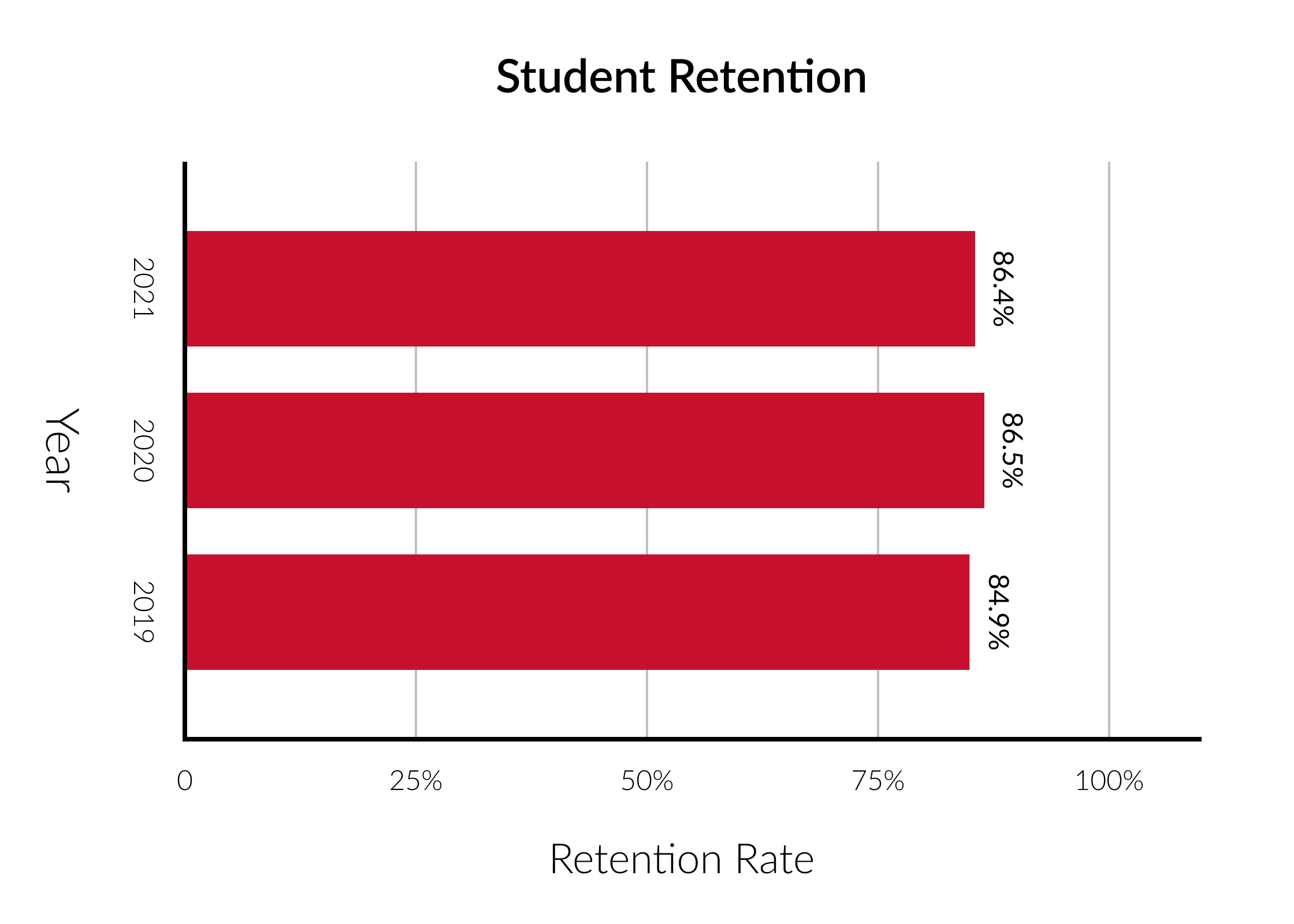 The university’s retention rate of 2020 first-year students was 86.4%, just one-tenth below last year’s rate of 86.5%.