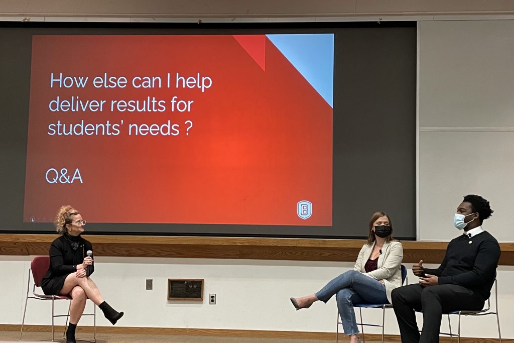 The presentation also included the floor being opened for a Q&A, which saw both Hoyhtya and Sykes alongside other Bradley senators asking questions they had received from students.