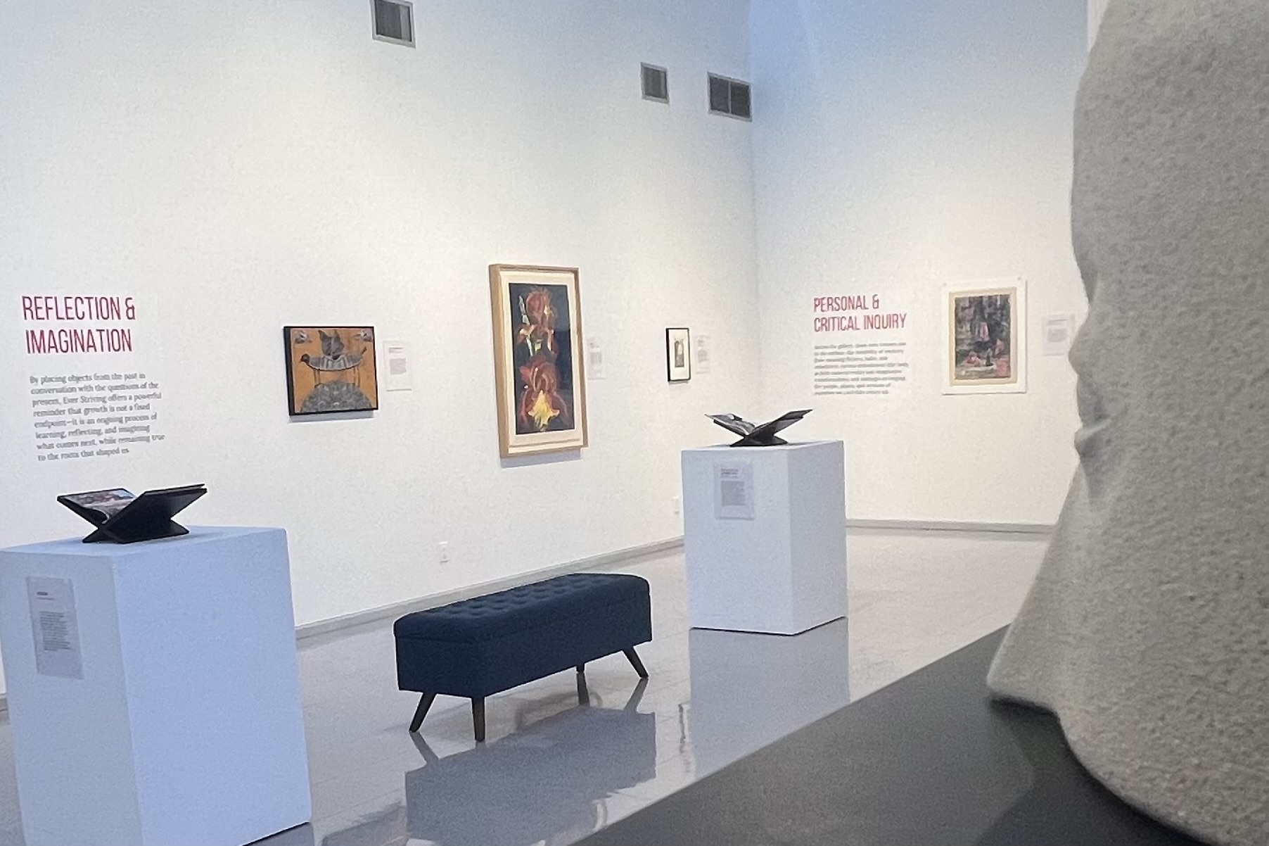 After its debut on Feb. 6, “Ever striving: Always approaching, but never arriving” opened its doors to the public, featuring works from mediums like printmaking, painting, sculpture and even historical notes from pen pals.