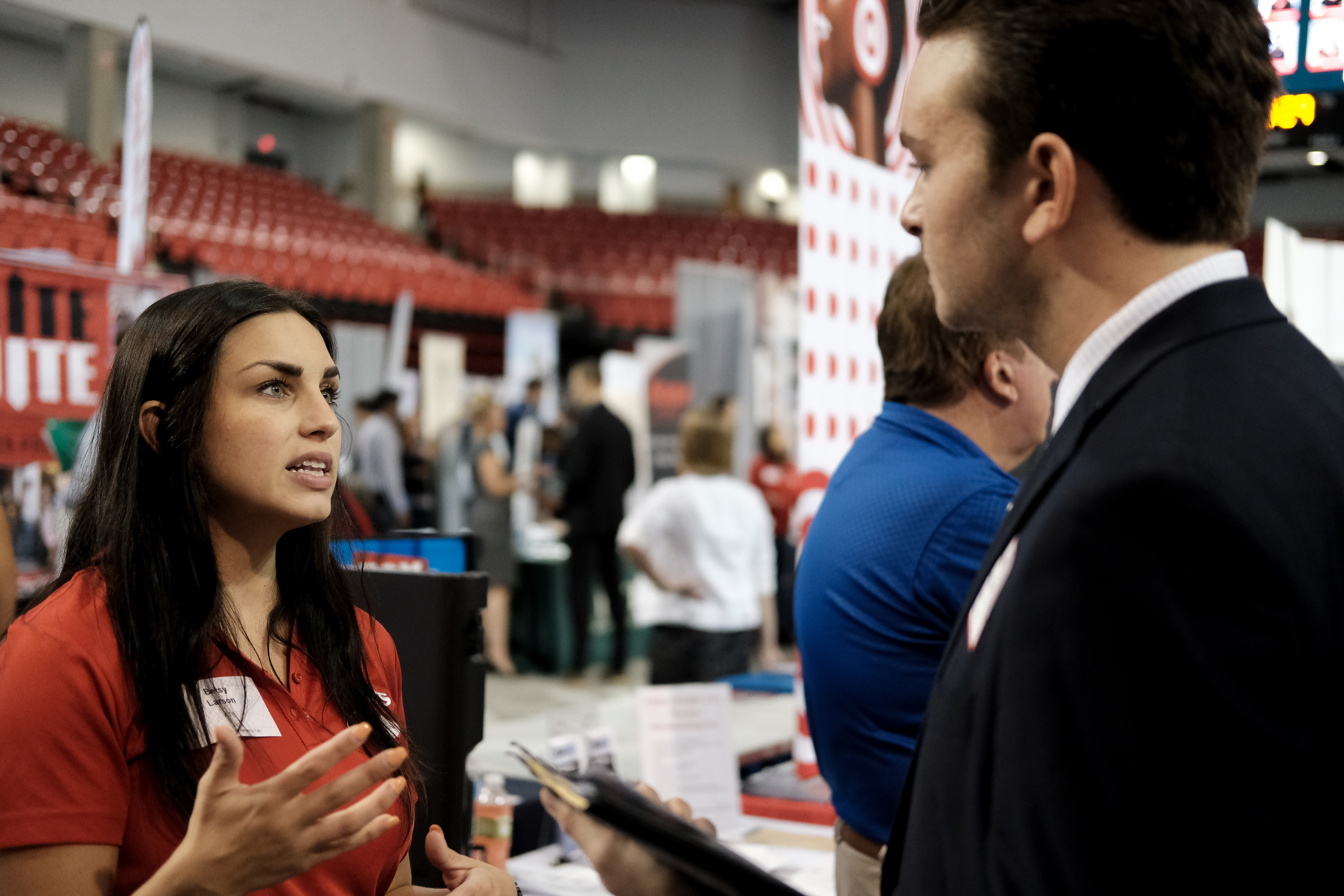 The Renaissance Coliseum was large enough for employers to display what their company is all about and how students can be involved. By presenting companies in this style, students are able to walk around and visit as many companies as possible, while employers can talk to each candidate freely and intimately.