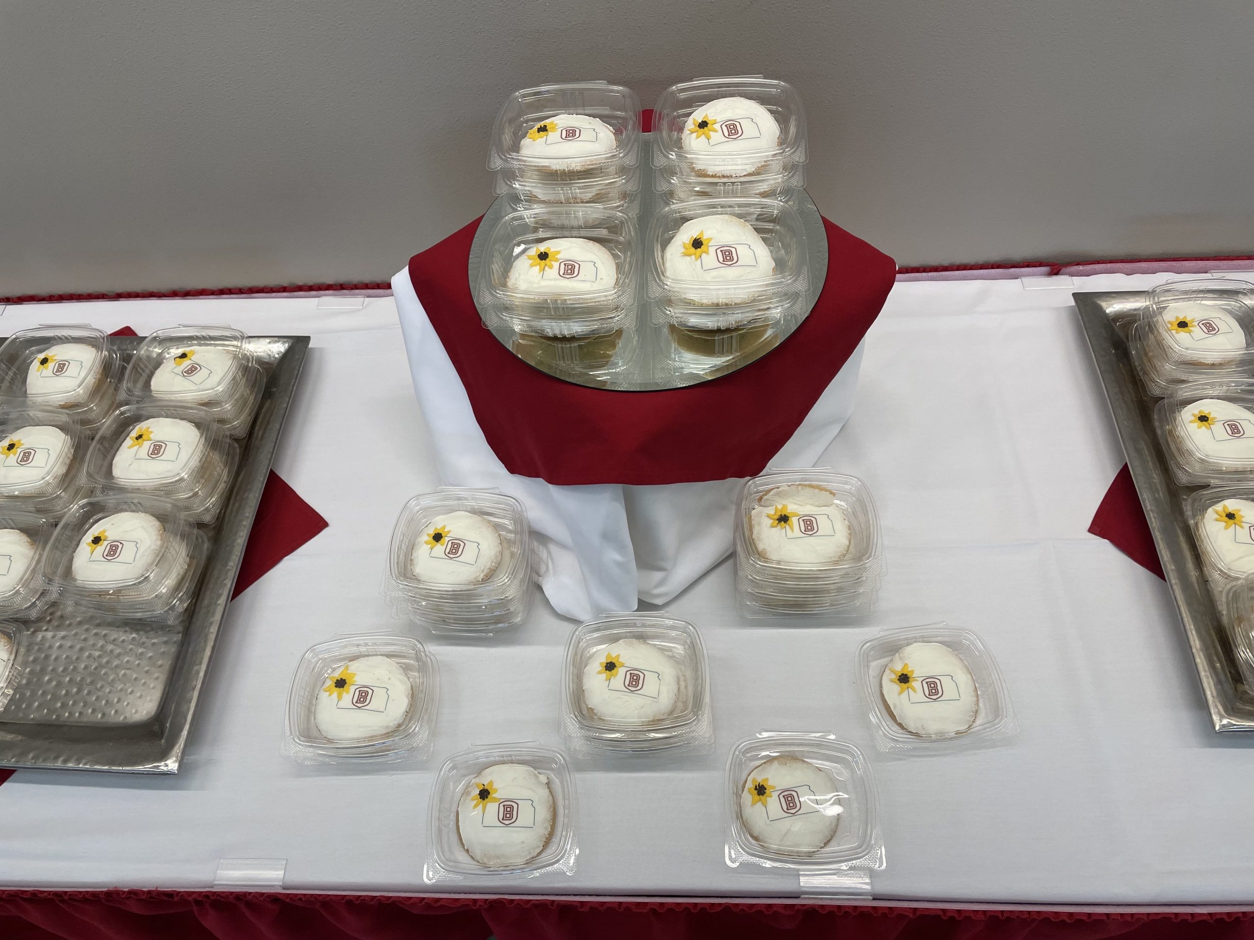 The event was titled “A Conversation & Cookies,” as attendees were welcomed by a display of sugar cookies outside the pavilion adorned with the Bradley logo, an outline of Kansas and frosting in the shape of the Kansas state flower: the sunflower.