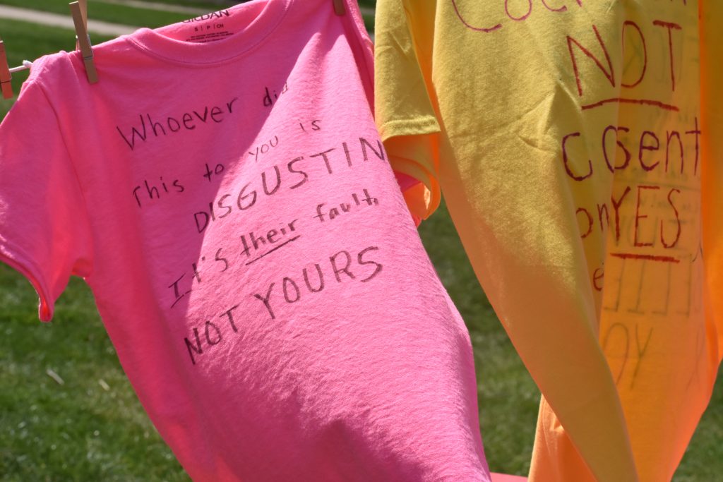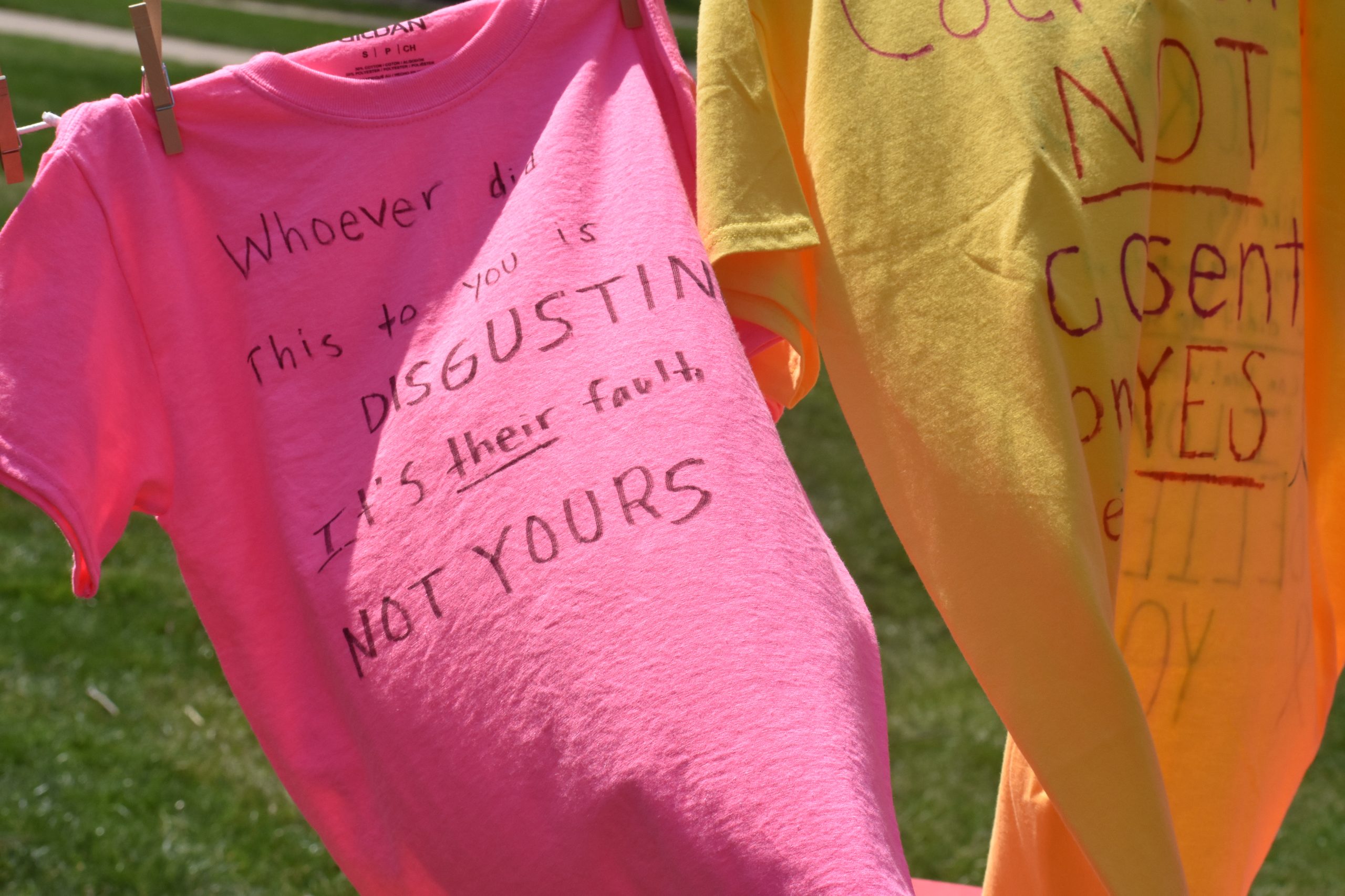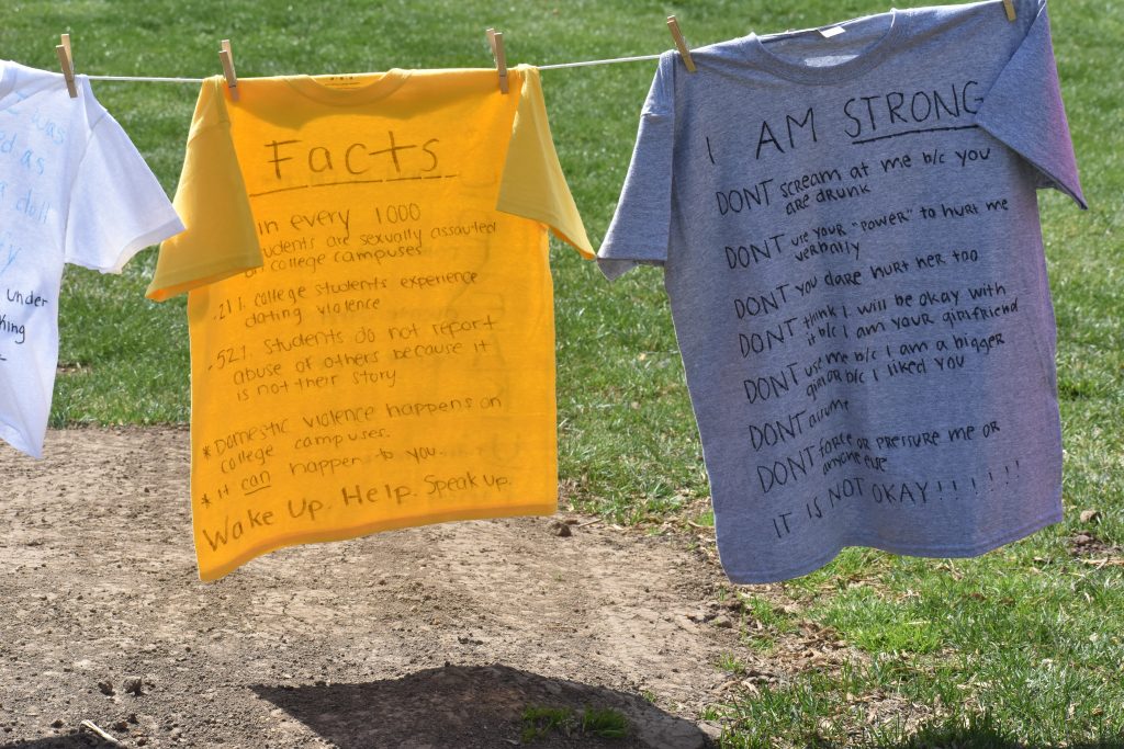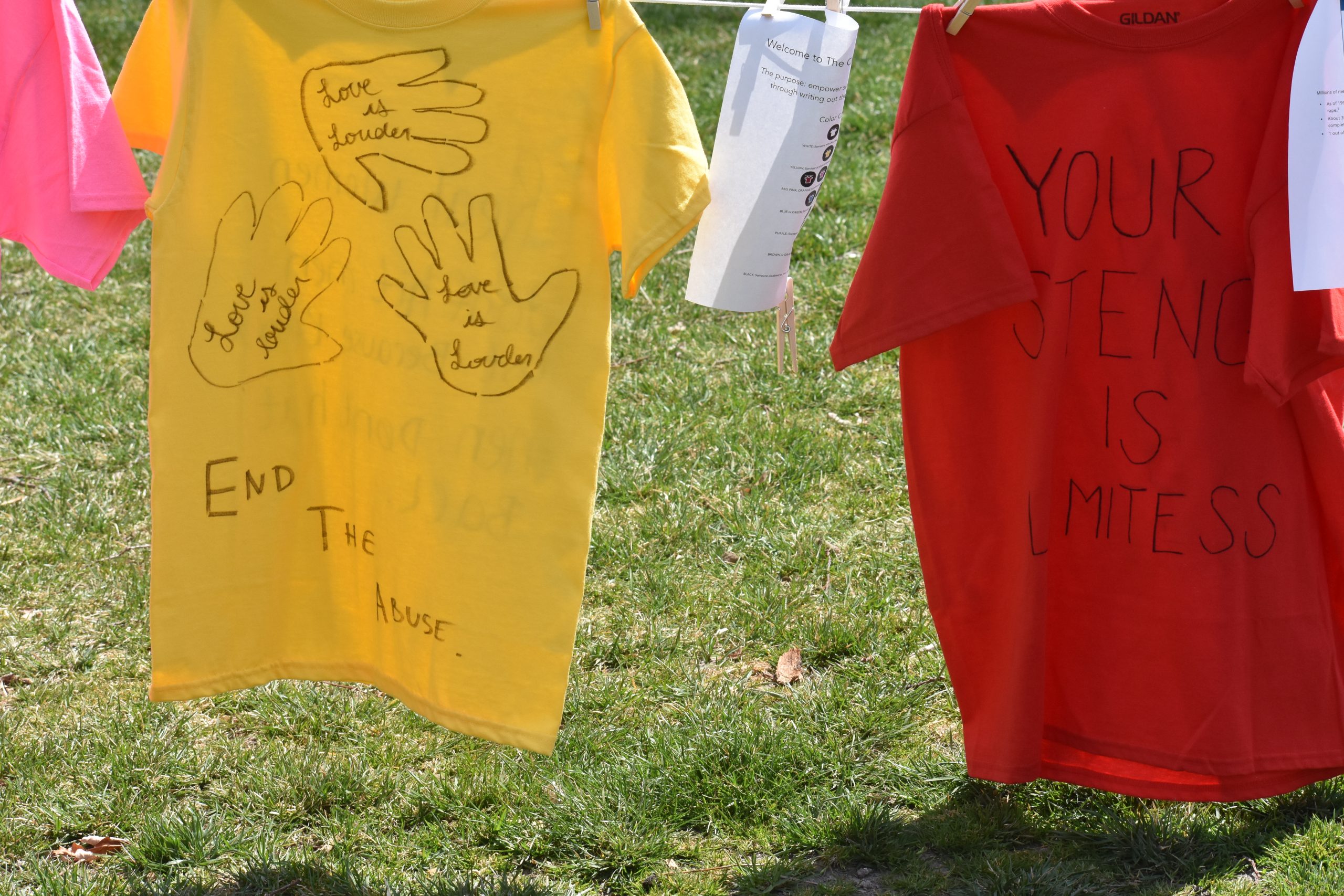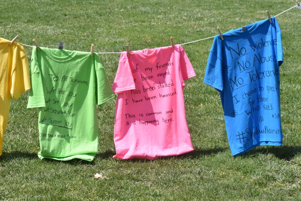 Shirts with messages of support for sexual assault survivors or personal experiences were hung up at Olin Quad throughout the day on April 6. Alpha Chi Omega sorority let students submit shirts anonymously.
