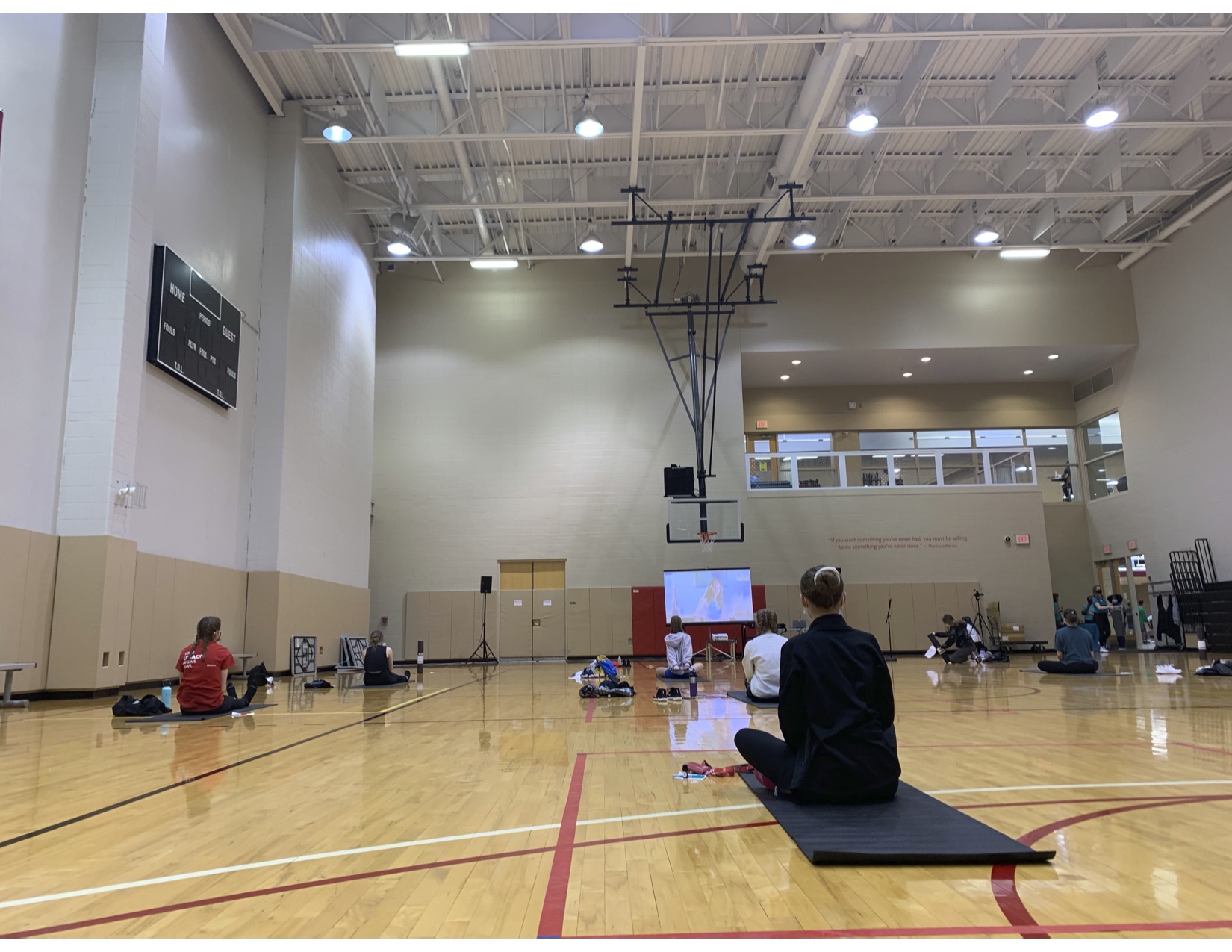The event was held in Markin Performance Court, with yoga mats provided by ACBU. Mats were spaced out to allow for proper social distancing. A Zoom option was also offered for students who attend remotely or didn’t feel comfortable participating in-person.