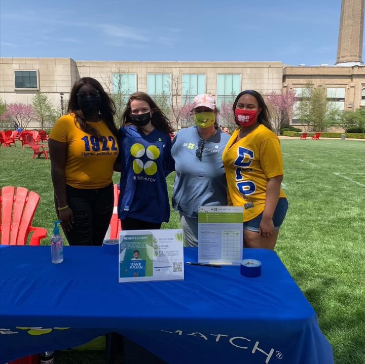 You can find Be the Match at the Get Fit Fair, the activities fair at the beginning of each semester and future swabbing opportunities on Olin Quad.