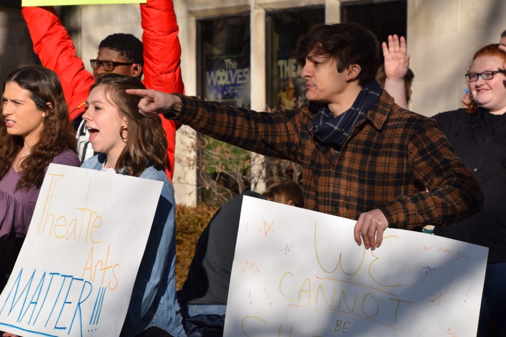 Junior theater production major Cierra Conrad was one organizer of the protest. She said she was devastated when she heard of the news of proposed cuts and knew action needed to take place.