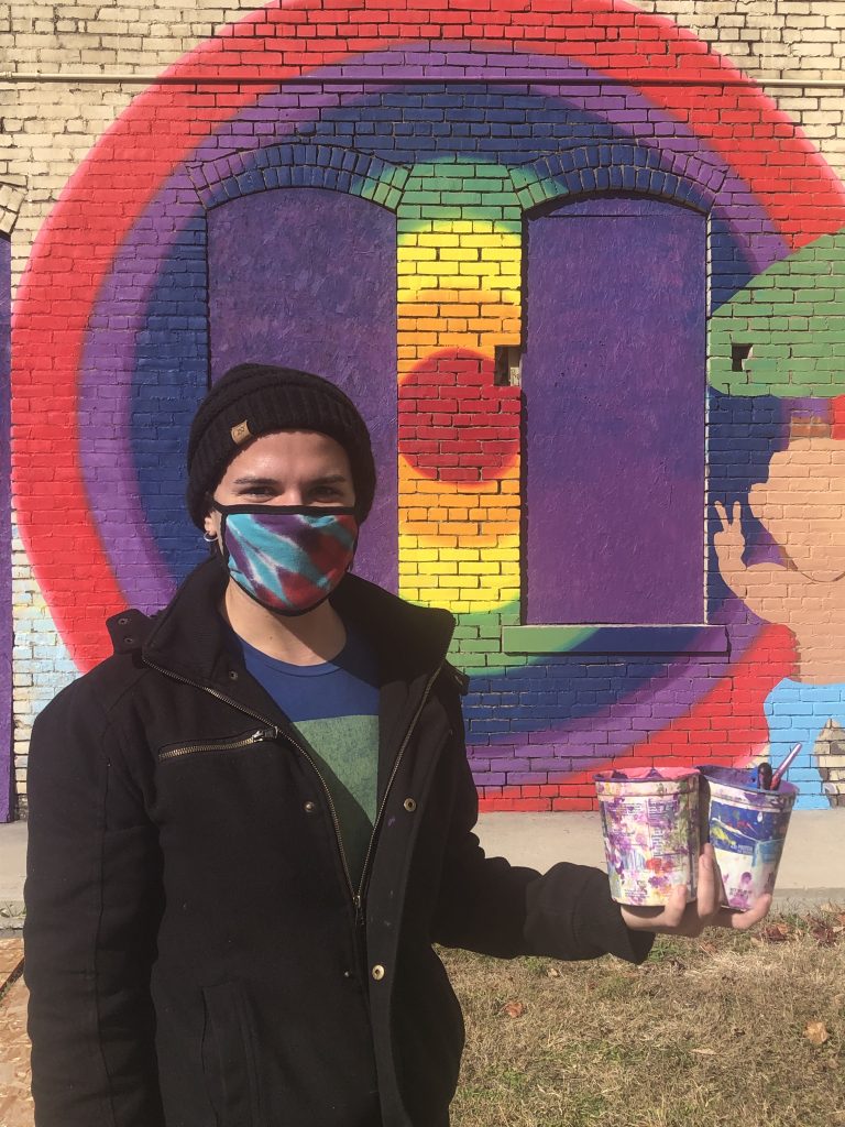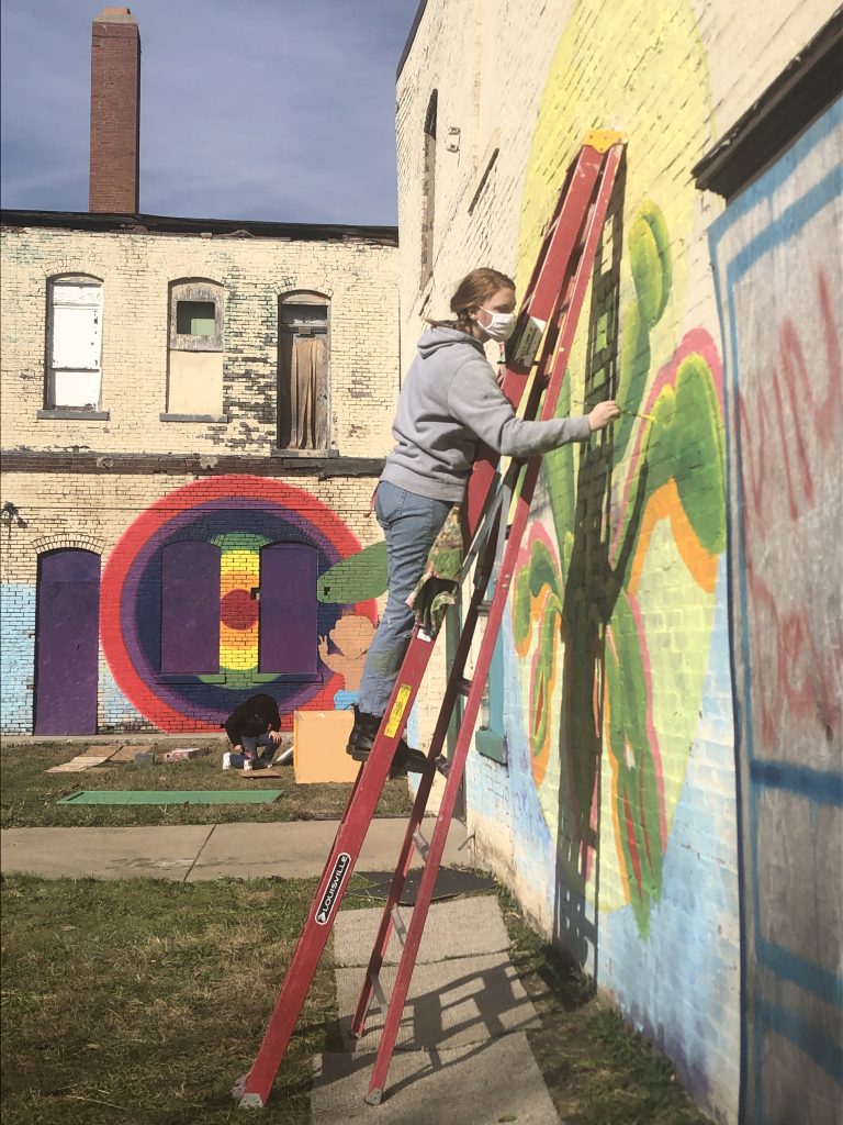 Additionally, Brammeier has utilized a large-scale mural project on an abandoned building in Peoria’s warehouse district for her painting classes. She chose a building with a lot of wall space on the side and the back of the building, while students were socially distanced.