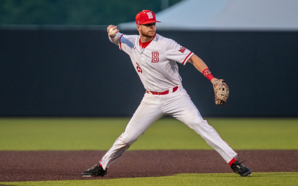 Brendan Dougherty whips the ball from third. Photo courtesy of Bradley Athletics.