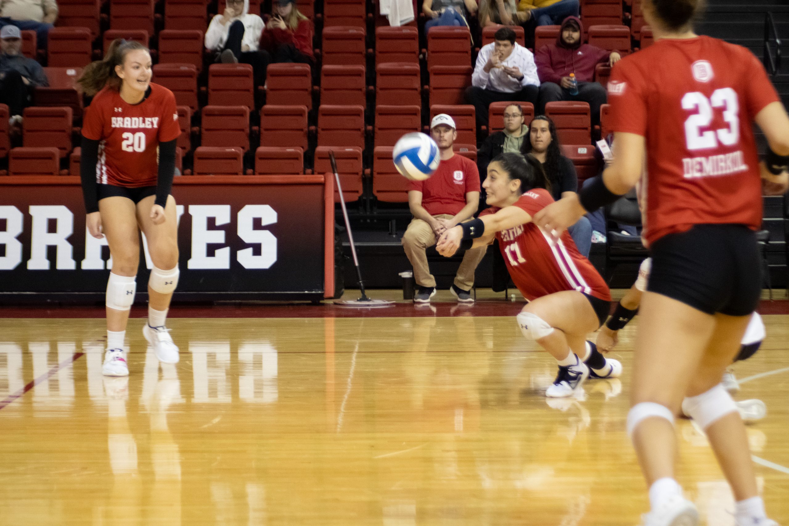 Leading the charge for Bradley against Drake was junior Doga Topcicek with 11 kills while ​​senior Karagan Coggin and sophomore Silan Demirkol both added seven each. Coggin and Topcicek both contributed with one ace.