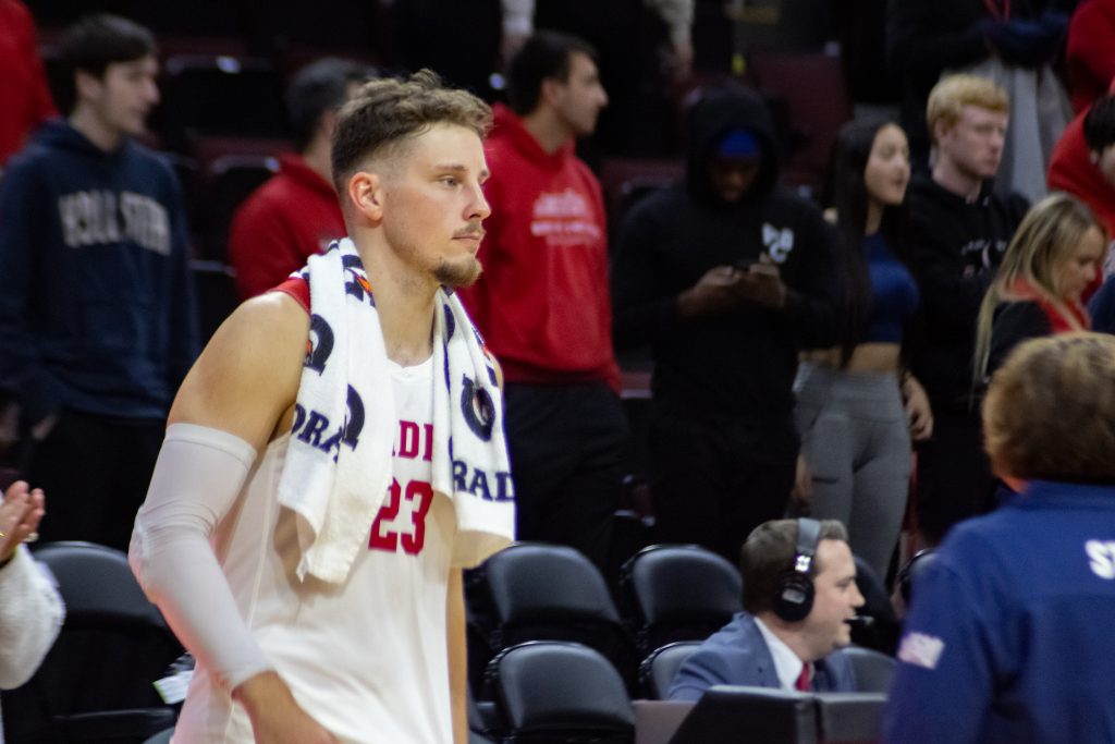 Hannah split a pair of free throws, but Henry fought physically to grab the offensive rebound and immediately got fouled in the process. Like Hannah, the Canadian forward split his free throws but Tahvanainen secured the rebound before dishing it to sophomore guard Connor Hickman, who drained a 3-pointer from the wing to put the Braves up 24-17. Leons sank a deep ball in transition on the next possession at the 5:41 mark to extend Bradley’s lead to 10 and energize the home faithful.