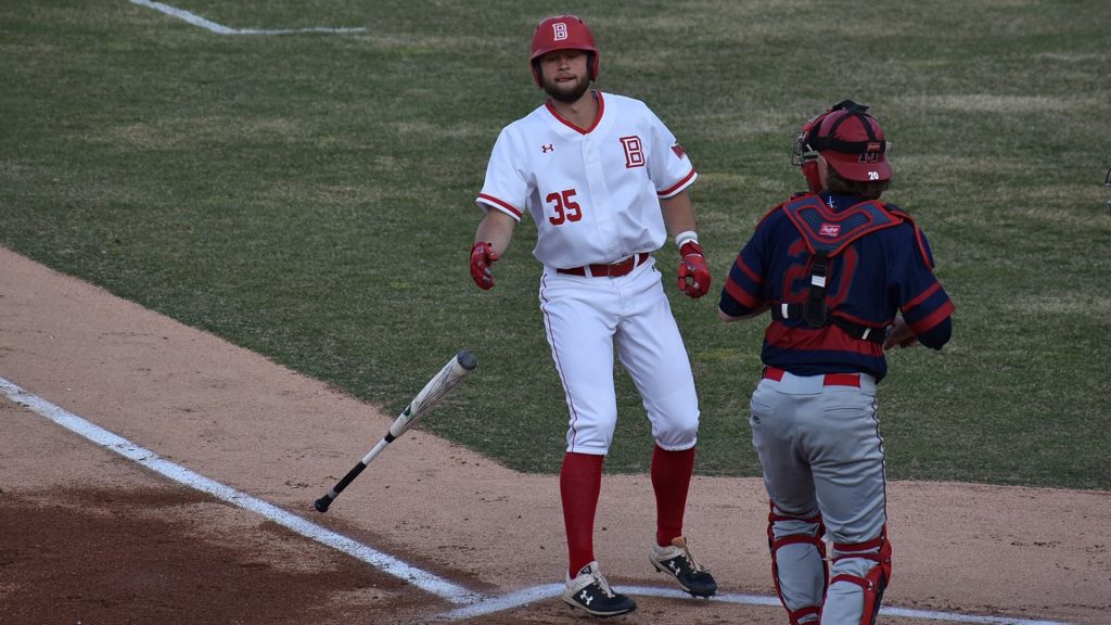 Dan Bolt draws a walk in a game in 2019. Photo via Bradley Athletics.