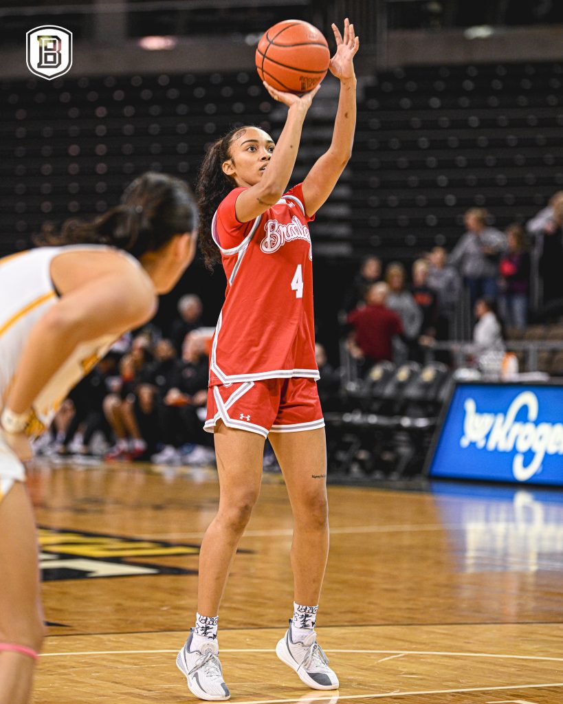 The Braves’ only points came from sophomore forward Ellie McDermid, graduate guard-forward Tamia Perryman and sophomore guard Mya Wardle. McDermid and Wardle would go on to finish with 14 points each, combining for 11 rebounds and eight assists, with the former earning Ameren Player of the Game honors.