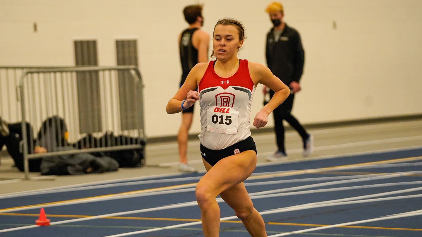 Wilma Nielsen runs at an indoor meet. Photo by Bradley Athletics