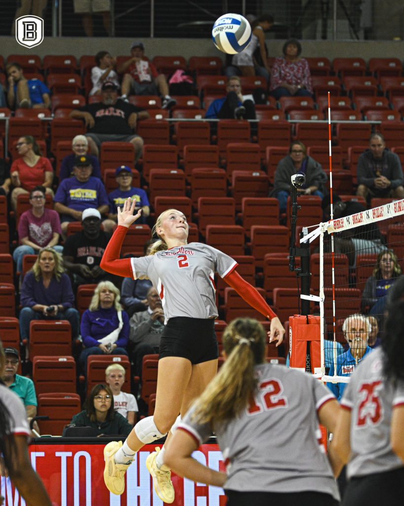 Junior Tendai Titley led the way with 17 kills and five blocks. Freshman Gracie Furlong and sophomore Dakota Elliott followed with 11 and 10, respectively. Senior Irene Mostardini totaled 23 digs and five aces, while Maria Drapp led the team in assists with 37.