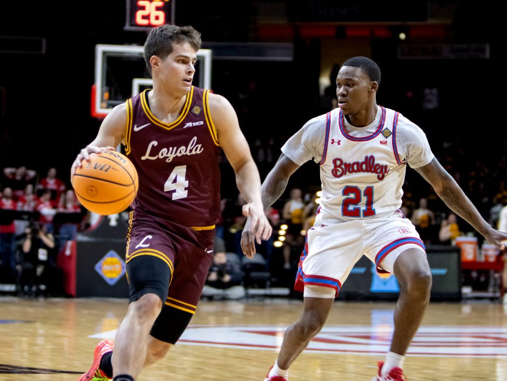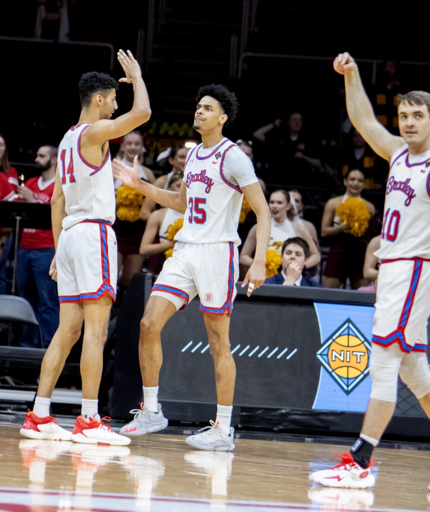 In their first matchup against Loyola in two years, Bradley used a strong first half to beat the Ramblers 74-62 and knock them out of the first round of the National Invitational Tournament (NIT). The Braves’ “big four” all scored in double figures, led by senior guard Duke Deen’s 18 and Hannah’s 17.