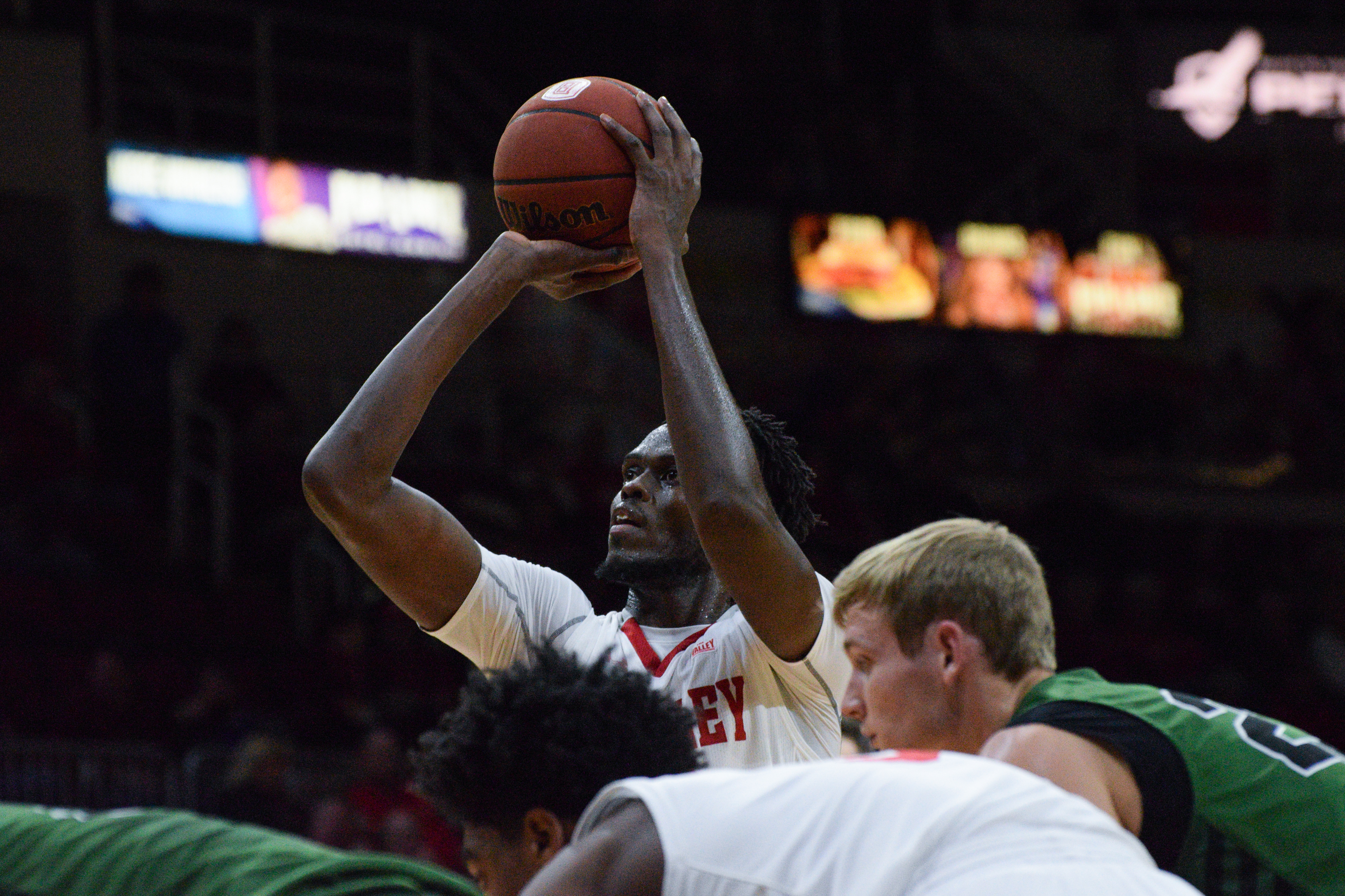 The first half opened on a 14-2 Bradley run led by sophomore forward Elijah Childs and junior center Koch Bar. Childs finished the game with 17 points and Bar finished the night with a career-high 19 points, 16 coming in the first half.