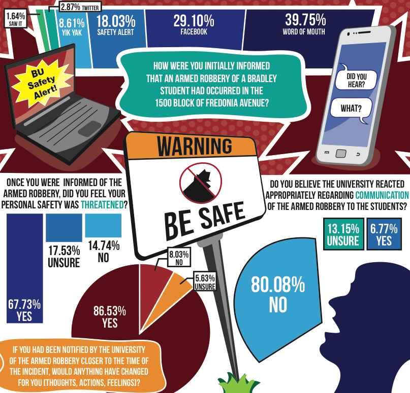 While a female student was walking to an off-campus residence, two non-student males approached her, one displaying a handgun, in the 1500 block of Fredonia at 9:37 p.m. April 13. The actions that followed the incident, however, have left many Bradley students questioning campus safety notification policies.
