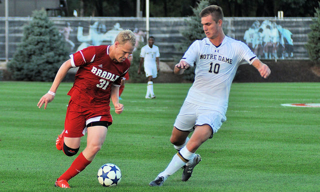 The storylines were aplenty Tuesday night as the men’s soccer team took on #1 ranked Notre Dame in the 2014 Danny Dahlquist Memorial Game, held every year to honor the Bradley soccer player killed in a 2007 house fire. In front of a Shea Stadium-record crowd of 3099, the Braves and the Fighting Irish played to a 2-2 draw last night.