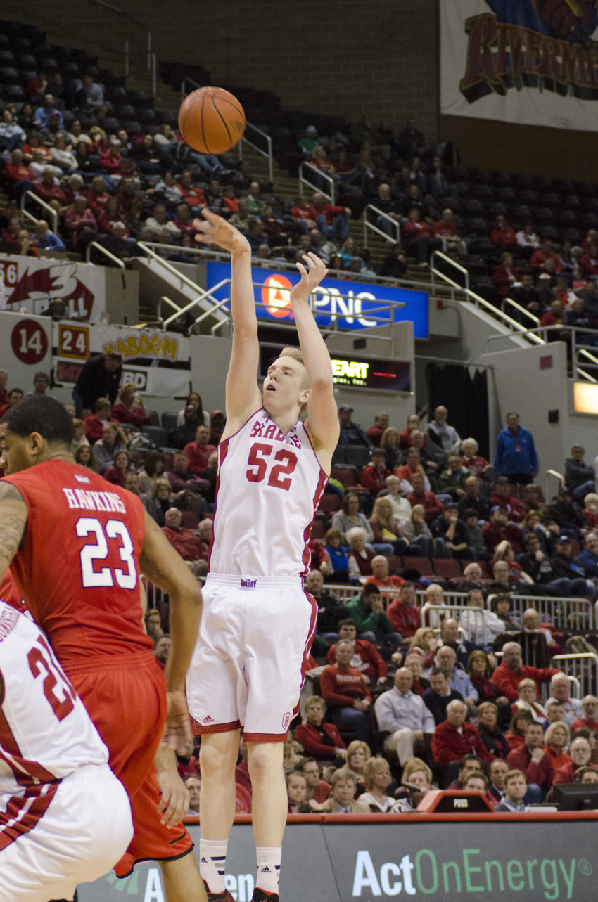He hit another three in a loss to Loyola, but also hit a crucial elbow jumper with 44 seconds left which tied the game at 53 and capped a comeback attempt that fell short.