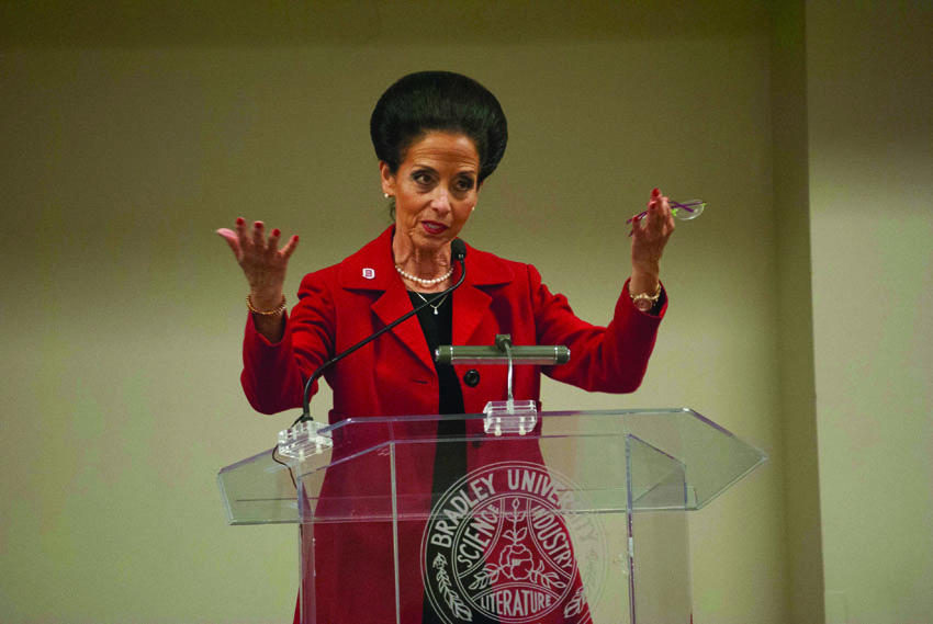 University President Joanne Glasser is shown speaking at the annual Speak Up event in Nov. 2014. Glasser announced her retirement Jan. 22, the same day Glassman was off campus to interview for the Eastern Illinois University presidency.