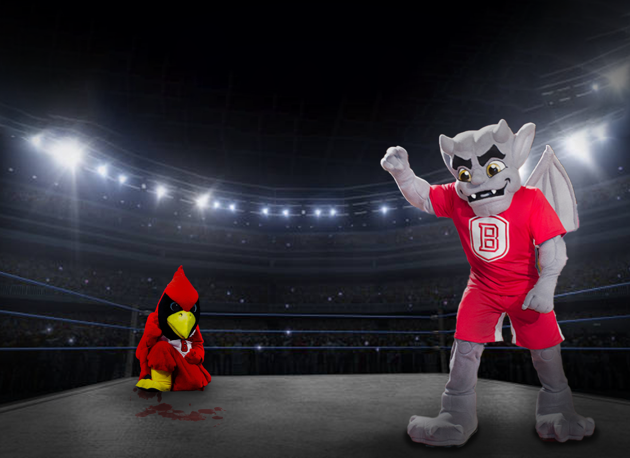 In his place, Drake subbed in their live mascot, Griff II, which led to their win against Evansville when Ace Purple refused to fight a live animal and withdrew from the competition. Reggie Redbird had no problem with it, as he picked Griff II up as soon as their quarterfinal match started and violently threw the bulldog out of the ring.